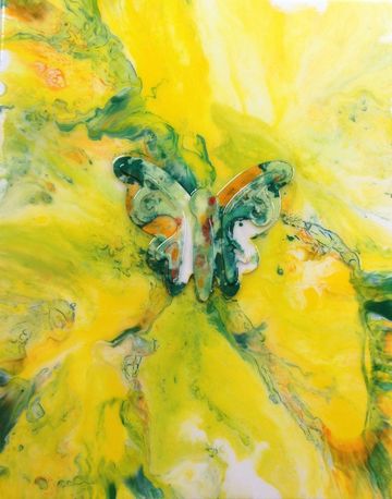 As bright as a summer's day; this butterfly is shining and showing its' beauty for the world to see. The shades of yellow, white and tinted greens, etc. are in collaboration perfectly completing its' scene. Simply beautiful.