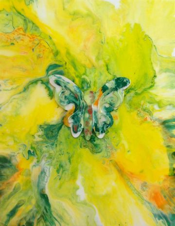 As bright as a summer's day; this butterfly is shining and showing its' beauty for the world to see. The shades of yellow, white and tints of greens are in collaboration perfectly completing its' scene. Simply beautiful.