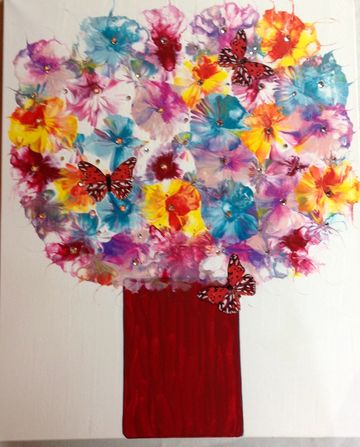Fluttering butterflies all over my vase, swarming and landing sprinkling diamonds on beautiful flowers; spreading beauty all over the place.