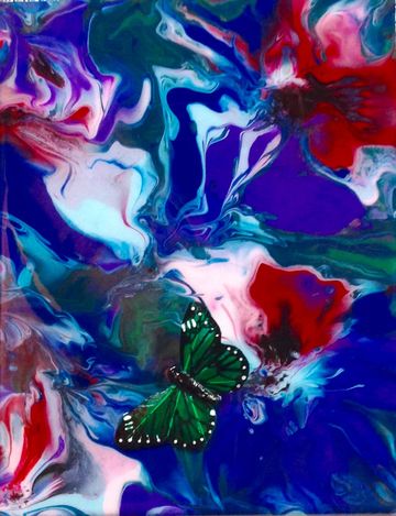 In this abstract interpretation of the Monarch butterfly, well know for their appearance, I focused on capturing its ' colors of orange-red, black and white.