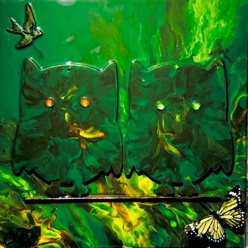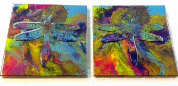 The Orange Sherbet Dragonfly Set with its' rich and vibrant colors remind me of early spring; so refreshing, a sight for sore eyes. You will most certainly love to wake up to this 2 piece set everyday. The resin topcoat adds a glass like finish that makes these pieces pop.
