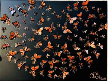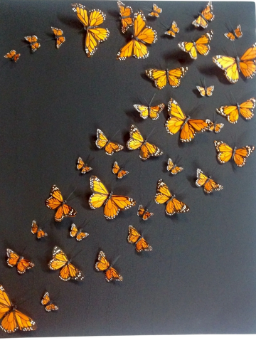 In the velvety dark of midnight, black and orange monarchs dance their way to freedom.